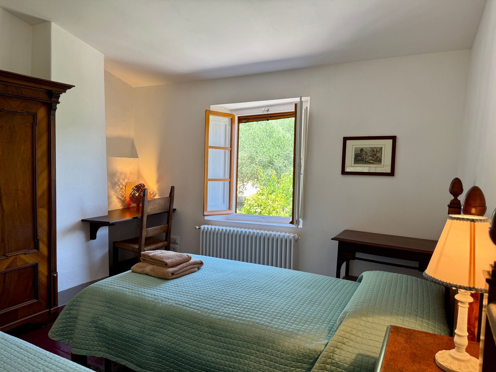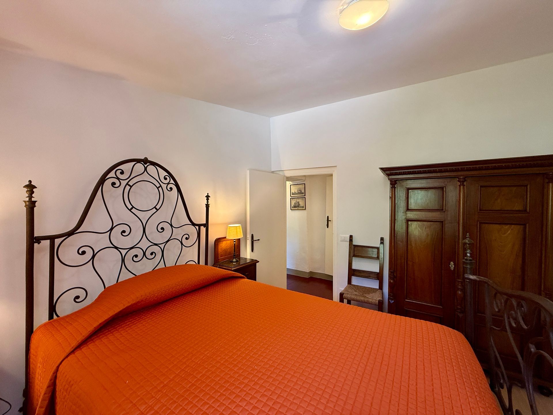 La prima camera da letto ha due letti singoli in legno e l’altra un alto letto tradizionale in ferro battuto (120x200 cm); dei comodi armadi d’epoca in legno e scrittoi completano l’arredamento di entrambe.