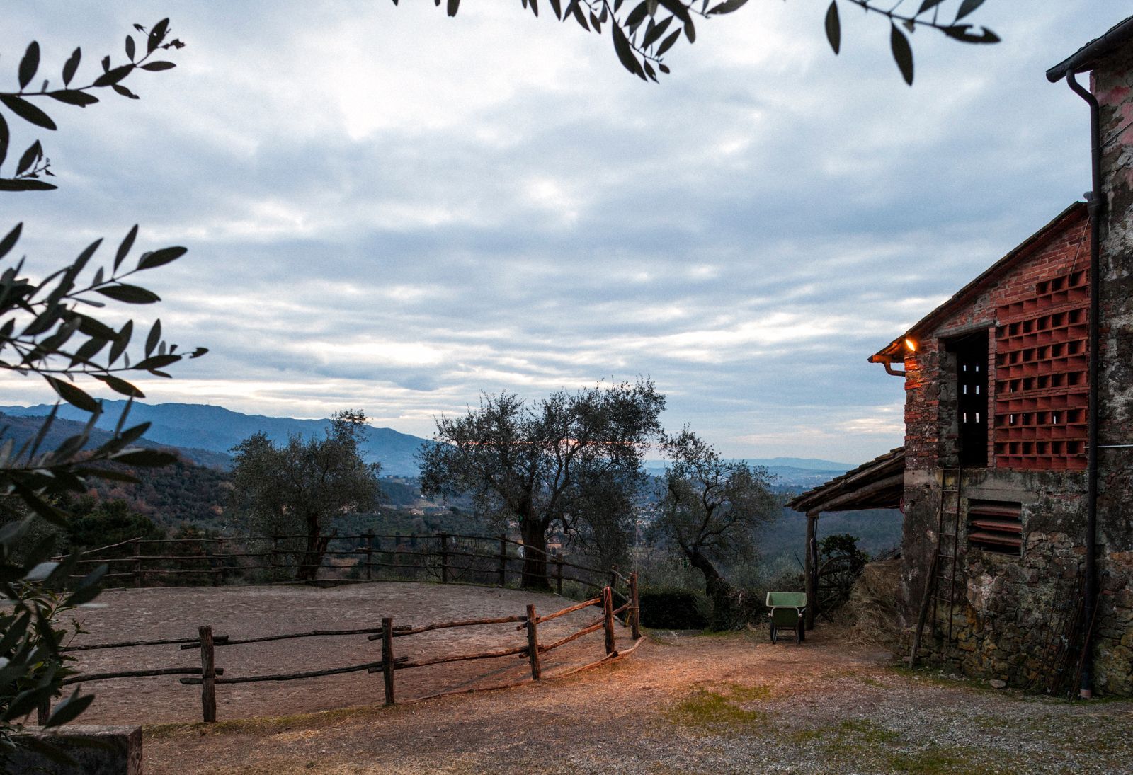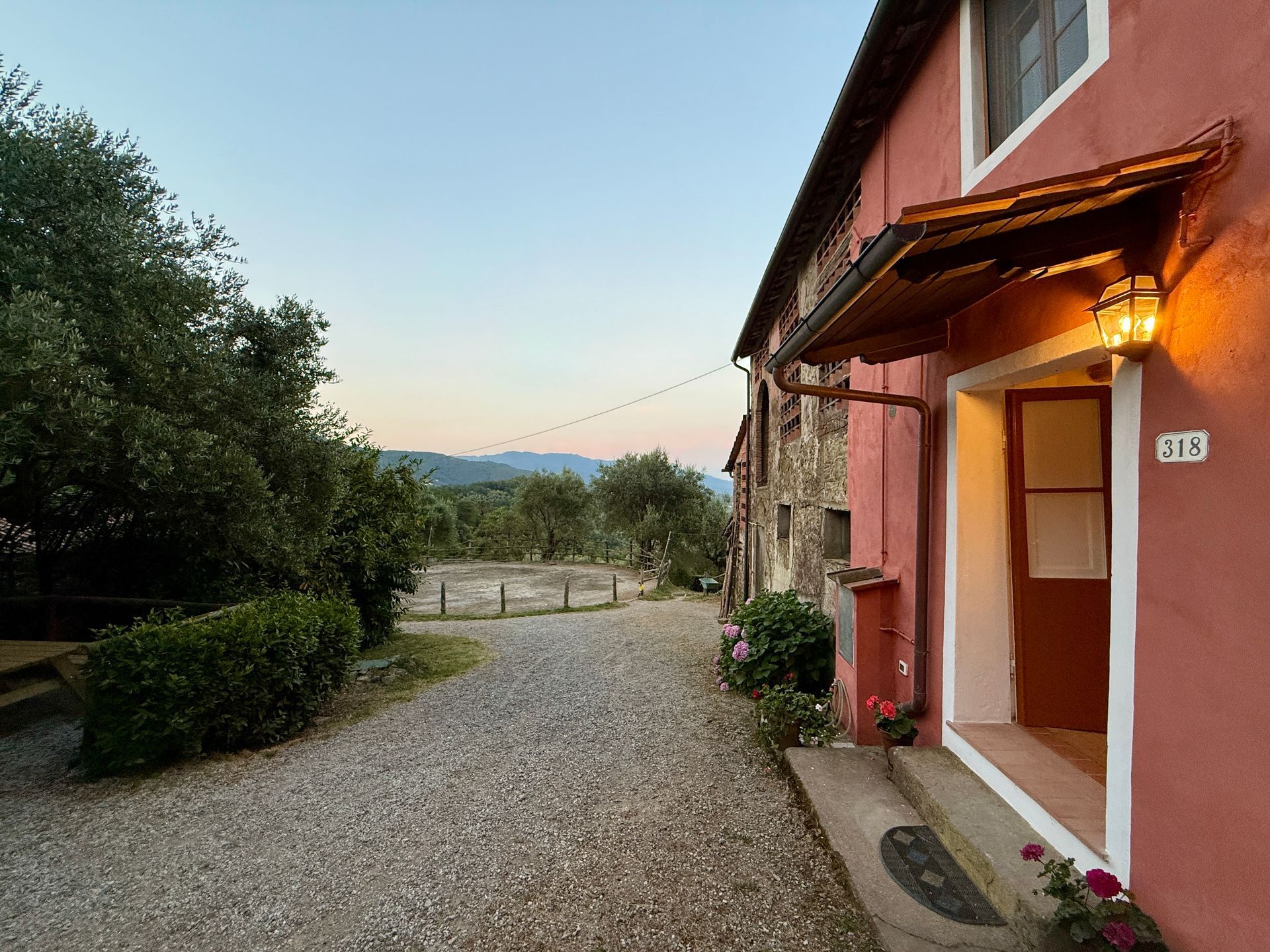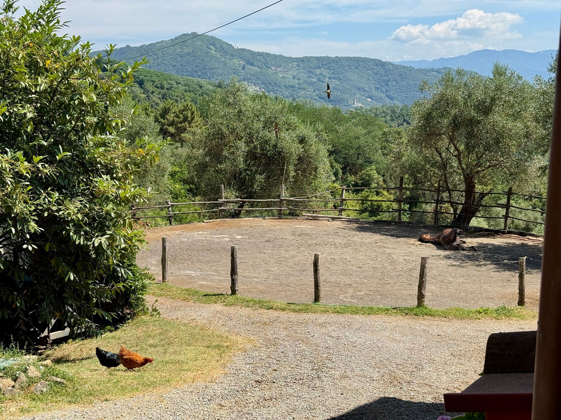 Costeggiato da uliveti e boschi, le sue finestre si affacciano direttamente sul cortile con il tondino e i recinti per i cavalli. Le galline e le rondini, con i loro richiami, fanno parte della colonna sonora del luogo.