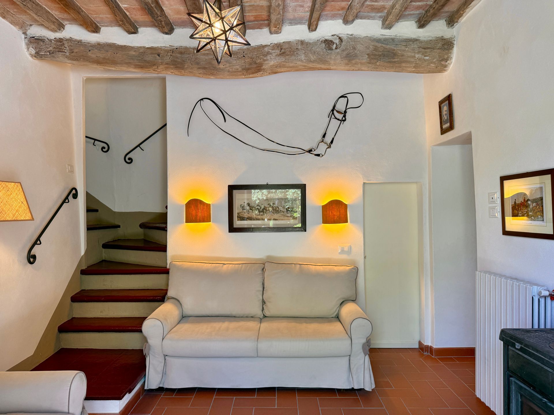 Compreso nella stessa bella casa colonica che ospita il club ippico “Le Pergole” e il laboratorio per la produzione del nostro miele biologico, questo appartamento rustico su due piani vi farà subito sentire parte della vita di campagna lucchese.