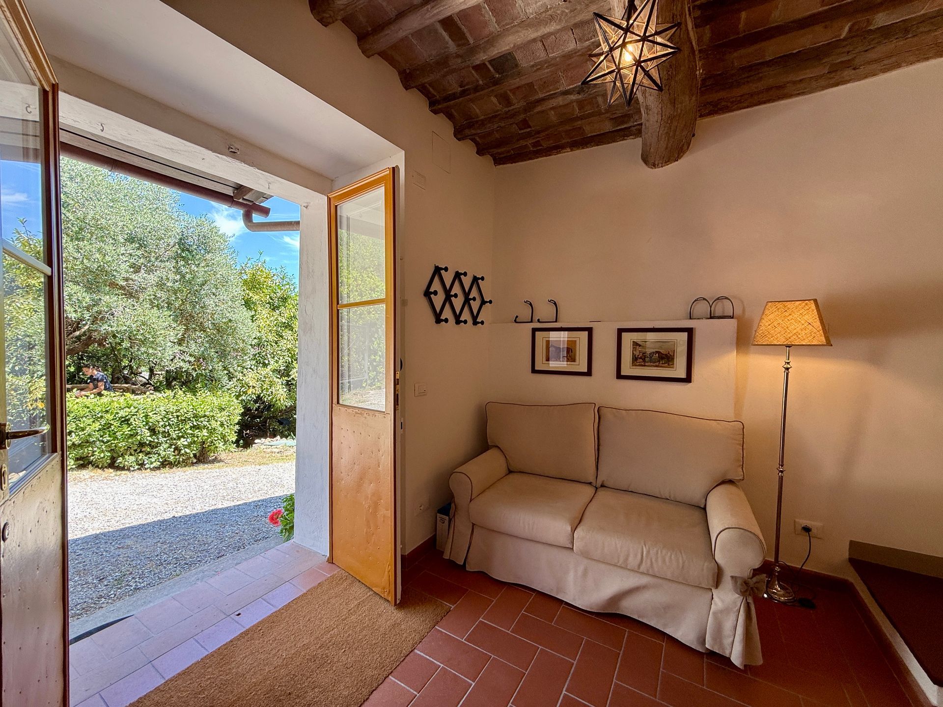 Questa casa di due piani, confortevole e ben arredata, con tre camere da letto, ha ancora l’aspetto di una semplice casetta di campagna. Situata sulle colline intorno a Lucca, la casa è circondata da oliveti e boschi, che assicurano privacy senza isolamento e gode di una magnifica vista panoramica.