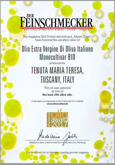 L’OLIO EXTRA-VERGINE BIO MONOCULTIVAR LECCINO 2016 DI TENUTA MARIA TERESA INCLUSO NELLA SELEZIONE DI FEINSCHMECKER!