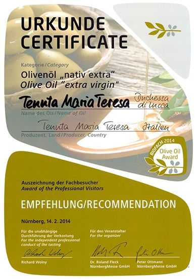 L’OLIO EXTRA-VERGINE BIOLOGICO DI TENUTA MARIA TERESA PREMIATO ALLA BIOFACH MESSE